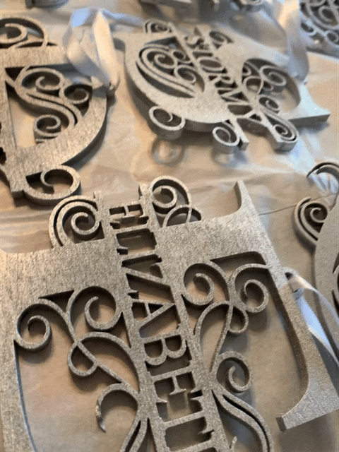 Customize ornaments for your friends, family, co-workers, teachers, school staff, and even your pets! Measures 5 inches tall. Width is determined by letter.